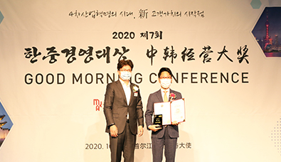 - <2020 제7회 한중경영대상> 기업부문 대상 수상